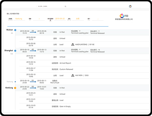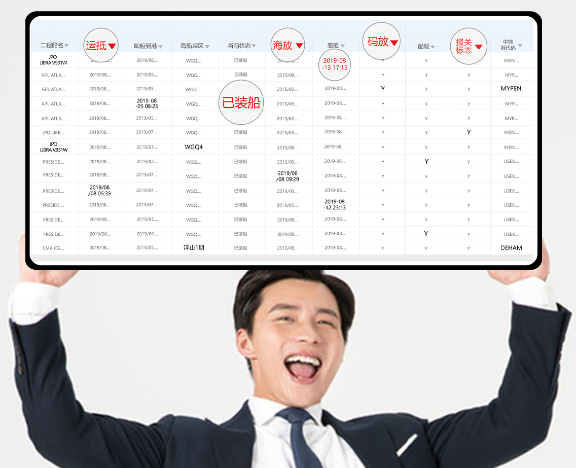 关键港口详细数据如运抵、 装船、海放、码放、报关… 分秒刷新,让您的操作行云 流水步步领先